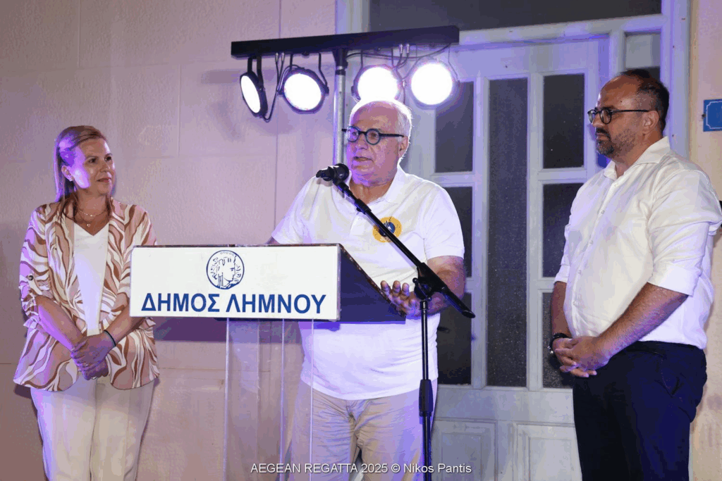 • ΔΕΛΤΙΟ ΤΥΠΟΥΜε αιγαιοπελαγίτικη αύρα η Τελετή Έναρξης της AegeanRegatta 2025 στη ΛήμνοΠλώρη για τον Άγιο Ευστράτιο έβαλαν το πρωί της Δευτέρας 25 Αυγούστου, τα σκάφη που μετέχουν στην Aegean Regatta, το διεθνή αγώνα ιστιοπλοΐας που διεξάγεται για 24η φορά και συνεχίζεινα γράφει ιστορία στο πανέμορφο Αιγαίο Πέλαγος. Η αυλαία του αγώνα άνοιξε το βράδυ της Κυριακής στη Μύρινα της Λήμνου με την Τελετή Έναρξης μπροστά από στο Δημαρχείο Λήμνου, παρουσία του Γενικού Γραμματέα Αιγαίου και Νησιωτικής Πολιτικής,Εμμανουήλ Κουτουλάκη, ο οποίος καλωσόρισε τους σχεδόν 500 ιστιοπλόους που μετέχουν στον αγώνα και τόνισε ότι η Aegean Regatta όλα αυτά τα χρόνια έχει τονώσει τα ακριτικά νησιά, έχει φέρει σε επαφή ιστιοπλόους από την Ελλάδα και το εξωτερικό ενώ έδωσε τη δυνατότητα σε όλους να γνωρίσουν τις ομορφιές των νησιών τους Αρχιπελάγους. Χαιρετισμό απηύθυναν η Δήμαρχος Λήμνου Ελεωνόρα Γεώργα και ο Πρόεδρος της Επιτροπής Ανοιχτής Θαλάσσης της Ελληνικής Ιστιοπλοϊκής Ομοσπονδίας Κωνσταντίνος Καλογερόπουλος. Προσφέρθηκαν τοπικά προϊόντα, παρουσιάστηκαν παραδοσιακοί