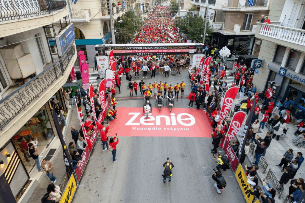 Η προσφορά της προνομιακής διπλής συμμετοχής ισχύει έως την Παρασκευή 26Σεπτεμβρίου 2025, για ατομικές εγγραφές.Το αγωνιστικό πρόγραμμα του «Νυχτερινού» περιλαμβάνει τον Ημιμαραθώνιο δρόμο (ώρα έναρξης 18:30), τον Δρόμο Υγείας&Δυναμικού Βαδίσματος10.000μ. (ώραέναρξης 17:00)και τονΔρόμο Υγείας & Δυναμικού Βαδίσματος 5.000μ. (ώρα έναρξης 21:30), που θα έχουνως αφετηρία το Δημοτικό Στάδιο Αμπελοκήπων «Κωνσταντίνος Καραμανλής», καθώς επίσης τονΔρόμο Ενός Μιλίου – Family Mile (ώρα έναρξης 18:25) με αφετηρία από το Δημαρχείο Παύλου Μελά.Κοινό σημείο τερματισμού όλων των δρόμων θα είναι το Δημοτικό Στάδιο Αμπελοκήπων«Κωνσταντίνος Καραμανλής».Αναλυτικές πληροφορίες για τις νέες αγωνιστικές διαδρομές, καθώς και για ό,τι αφορά τημεταφορά, διαμονή και υποστήριξη της αγωνιστικής συμμετοχής παρέχονται από τηνΠροκήρυξη της διοργάνωσης και από τον επίσημο δικτυακό τόπο http://www.thesshalfmarathon.org/.Οι εγγραφές μπορούν να υποβληθούν με τους εξής τρόπους: α. Με online δήλωση συμμετοχής στον επίσημο δικτυακό τόπο της διοργάνωσης, www . thesshalfmarathon . org και www . thesshalfmarathon . gr .β. Με αποστολή της έντυπης φόρμας εγγραφής με e-mail στο info @ thesshalfmarathon . org γ. Αυτοπροσώπως στα Κεντρικά Γραφεία της διοργάνωσης, Εθνικό Καυτανζόγλειο Στάδιο.δ. Για εγγραφή μέσω Ιδρύματος-Φορέα του Προγράμματος Κοινωνικής Ευθύνης της διοργάνωσης: Ο δρομέας υποβάλλειαπευθείας τη δήλωσή του στο Ίδρυμα-Φορέα πουεπιλέγει,εντασσόμενος στην ομάδα του (Running Team).ε.Για τα Σωματεία Στίβου της ΕΑΣ ΣΕΓΑΣ Θεσσαλονίκης είναι εν ισχύι η προσφορά Κοινωνικής Ευθύνης κατόπιν επικοινωνίας τους με τη διοργάνωση. ΟΔιεθνήςΝυχτερινόςΗμιμαραθώνιοςΘεσσαλονίκηςαποτελείτακτικόμέλοςτηςΠαγκόσμιαςΟμοσπονδίας Μαραθωνίων AIMS καιοι διαδρομές των δρόμων του αγωνιστικούπρογράμματοςφέρουντηνεπίσημηπιστοποίησητηςΠαγκόσμιαςΟμοσπονδίαςΚλασσικούΑθλητισμού,World Athletics. Διοργανώνεται από τον ΜΕΑΣ ΤΡΙΤΩΝ με τη θεσμική συνεργασία των ΔήμωνΑμπελοκήπων-Μενεμένης, Κορδελιού-Ευόσμου και Παύλου Μελά, με τη θεσμική υποστήριξη τουΣΕΓΑΣκαιτηςΕΑΣΣΕΓΑΣΘεσσαλονίκης,καθώςκαιτηςΠεριφέρειαςΚεντρικήςΜακεδονίας,τηναιγίδατηςοποίαςφέρει.ΤελείεπίσηςυπότηναιγίδατηςΕλληνικήςΕθνικήςΕπιτροπήςγιατηνUNESCO,τουΥπουργείουΕσωτερικών(Μακεδονίας-Θράκης), τουΥπουργείουΠαιδείας,Θρησκευμάτων και Αθλητισμού – Γενικής Γραμματείας Αθλητισμού, του ΥπουργείουΤουρισμού -ΕλληνικούΟργανισμούΤουρισμούκαιτουΥπουργείουΕθνικήςΆμυνας.ΠαράλληλατελείταιμετηνυποστήριξηπλήθουςΘεσμικώνΦορέων,ΦορέωνΥποστήριξηςκαιΕθελοντικώνΦορέων,όπως αυτοί φαίνονται στον επίσημο δικτυακό τόπο www.thesshalfmarathon.org.Σάββατο 18 Οκτωβρίου. Τρέχουμε… Δεν κοιμόμαστε!ΤΟ ΓΡΑΦΕΙΟ ΤΔελτίο ΤύπουΠέμπτη 18 Σεπτεμβρίου 2025Τελευταία εβδομάδα ομαδικών και ατομικών εγγραφών για τον 13ο ΔιεθνήΝυχτερινό Ημιμαραθώνιο Θεσσαλονίκης – ZeniΘ!ΤηνπενθήμερηπαράτασητωνομαδικώνεγγραφώναποφάσισεηΟργανωτικήΕπιτροπήτου13ου Διεθνούς Νυχτερινού Ημιμαραθωνίου Θεσσαλονίκης – ZeniΘ του Σαββάτου 18 Οκτωβρίου, ανταποκρινόμενη στο έντονο ενδιαφέρον για συμμετοχή στο μεγαλύτερο νυχτερινό πάρτυ δρόμου της χώρας!Ηαρχικήπροθεσμίαγιατηνυποβολή τωνομαδικώνεγγραφώνστοναυθεντικόΝυχτερινό έληγετην Παρασκευή 19 Σεπτεμβρίου. Ανταποκρινόμενη στο αίτημα δεκάδων ομάδων για ολιγοήμερη παράταση και προκειμένου να ικανοποιήσει το έντονο ενδιαφέρον των οργανωμένων δρομέων, η Οργανωτική Επιτροπή αποφάσισε να παρατείνει την προθεσμ