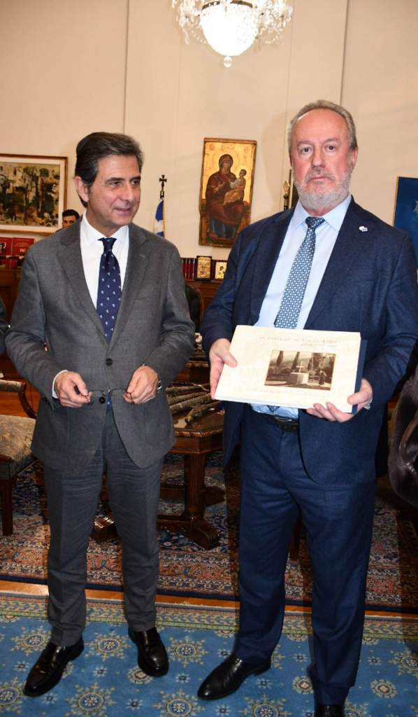 Γραφείο Τύπου Υφ. Εσωτερικών (Μακεδονίας και Θράκης) Παρ 30 Ιαν στις 7:26 μ.μ. From: Γραφείο Τύπου Υφ. Εσωτερικών (Μακεδονίας και Θράκης) <press@mathra.gr> Sent: Friday, January 30, 2026 7:24 PM To: Γραφείο Τύπου Υφ. Εσωτερικών (Μακεδονίας και Θράκης) <press@mathra.gr> Subject: ΔΤ-Επίσκεψη του δ.σ. της Διεθνούς Ένωσης Οικονομικών και Κοινωνικών Συμβουλίων (AICESIS) στο ΥΜΑΘ Θεσσαλονίκη, 30 Ιανουαρίου 2026 Επίσκεψη του δ.σ. της Διεθνούς Ένωσης Οικονομικώνκαι Κοινωνικών Συμβουλίων (AICESIS) στο ΥΜΑΘ Μια πολυπληθής αντιπροσωπεία με περισσότερα από 40 άτομα από διάφορες χώρες ανά την υφήλιο-μέλη του διοικητικού συμβουλίου της Διεθνούς Ένωσης Οικονομικών και Κοινωνικών Συμβουλίων (AICESIS), με επικεφαλής τον πρόεδρο της Ένωσης, κ. Γιάννη Πάιδα, επισκέφθηκε σήμερα το ΥΜΑΘ.Ο Υφυπουργός Εσωτερικών, αρμόδιος για θέματα Μακεδονίας και Θράκης Κωνσταντίνος Π. Γκιουλέκας αναφέρθηκε στους υψηλούς ρυθμούς ανάπτυξης της Μακεδονίας και της Θράκης και απηύθυνε πρόσκληση συνεργασίας με την AISECIS για την περαιτέρω ανάπτυξη της περιοχής.«Θέλω να γνωρίζετε ότι η περιοχή της Μακεδονίας και της Θράκης αναπτύσσεται πάρα πολύ γρήγορα. Συνορεύουμε με τέσσερα κράτη, έχουμε τρία από τα πιο σημαντικά λιμάνια της Ελλάδας – τα λιμάνια της Θεσσαλονίκης, της Καβάλας και της Αλεξανδρούπολης – και στην περιοχή μας εδρεύει το μεγαλύτερο Πανεπιστήμιο των Βαλκανίων, το Αριστοτέλειο Πανεπιστήμιο και συνολικά πέντε κρατικά και δυο ιδιωτικά Πανεπιστήμια.Η ελληνική Κυβέρνηση κάνει μια πολύ μεγάλη προσπάθεια σε συνεργασία και με τα υπόλοιπα κράτη της περιοχής να ανεβάσει την ανάπτυξη στην περιοχή μας, κάτι στο οποίο θα χαρούμε πάρα πολύ να μετέχετε και εσείς και μέσω του Προέδρου της Διεθνούς Ένωσης Οικονομικών και Κοινωνικών Συμβουλίων (AICESIS), του κ. Γιάννη Πάιδα, μπορούμε να έχουμε μια διαρκή επαφή. Διότι η Ελλάδα θέλει γέφυρες συνεργασίας με όλες τις χώρες και η Κυβέρνηση του Κυριάκου Μητσοτάκη είναι μια Κυβέρνηση εξωστρεφής που διαρκώς διευρύνει τις συνεργασίες με όλες τις χώρες», ανέφερε χαρακτηριστικά ο Κ.Γκιουλέκας.Ο Υφυπουργός Εσωτερικών συνεχάρη επίσης τον κ. Πάιδα για την ανάληψη της προεδρίας της AICESIS (σ.σ. εδώ και τρεις μήνες).Από την πλευρά του ο κ. Πάιδας εξέφρασε τις ευχαριστίες της AICESIS για τη ζεστή υποδοχή στο ΥΜΑΘ και τόνισε ότι συνδέεται με στενούς δεσμούς φιλίας και συνεργασίας με τον Υφυπουργό Εσωτερικών-Μακεδονίας και Θράκης από τα φοιτητικά τους χρόνια μέχρι σήμερα. Από το Γραφείο ΕΛΛΗΝΙΚΗ ΔΗΜΟΚΡΑΤΙΑ ΥΠΟΥΡΓΕΙΟ ΕΣΩΤΕΡΙΚΩΝ Τομέας Μακεδονίας & Θράκης Διοικητήριο Θεσσαλονίκης Τ.Κ.541 23, Θεσσαλονίκη, ΤΗΛ.:2313 501 400 & 2313501 401-2-3-4 E mail: minister@mathra.gr