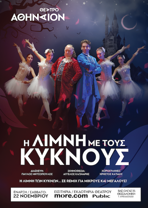 - «ΗΛίμνημετουςΚύκνους»Στο Θέατρο ΑθήναιονΜία ολοκαίνουρια χορευτική θεατρική παράσταση για τους μικρούς και τους όχι τόσομικρούς μας φίλους ξεκινά στο πλήρως ανανεωμένο θέατρο Αθήναιον.Από την ομάδα των επιτυχιών του «Γκρούφαλο» και του «Καλικάντζαρου» μια εξωφρενική νέα εκδοχή του αριστουργήματος του Τσαϊκόφσκι έρχεται στη σκηνή του ανανεωμένου θεάτρου Αθήναιον, ως μία νέα υπερπαραγωγή με 12μελή θίασο και λαμπερά κοστούμια και ψηφιακά σκηνικά.Η Λίμνη με τους Κύκνους, είναι μία χορευτική θεατρική παράσταση βασισμένη στο κλασικό παραμύθι και ωραιότερο μπαλέτο όλων των εποχών. Αθάνατες μελωδίες της κλασικής μουσικής, σύγχρονες ποπ συνθέσεις, διαφορετικά είδη χορού και ένας δωδεκαμελής θίασος συνθέτουν το απόλυτο must-see θέαμα τόσο για τους μικρούς, όσο και για τος μεγάλους φίλους του θεάτρου! Μια παράσταση γεμάτη ενέργεια και φαντασία σε διασκευή Παύλου Μητσόπουλου, σκηνοθεσία Άγγελου Κλωνάρη και χορογραφία Χρήστου Κατίδη που θα απολαύσετε.ΣυντελεστέςΔιασκευή: Παύλος ΜητσόπουλοςΣκηνοθεσία: Άγγελος ΚλωνάρηςArt Director: Μαγδαληνή ΣίγαΧορογραφίες: Χρήστος ΚατίδηςΜουσική Επιμέλεια: Άγγελος Κλωνάρης, Χρήστος ΚατίδηςΤεχνική Κάλυψη: Μιχάλης ΒιδάληςΦωτισμοί: Βαγγέλης ΜατίκαςΒοηθός Παραγωγής: Γεωργία ΕρδινέληΠαίζουν και χορεύουν:Ρόθμπαρτ: Κατίδης ΧρήστοςΠρίγκιπας Ζίγκφριντ: Ζλάτος Στέλιος