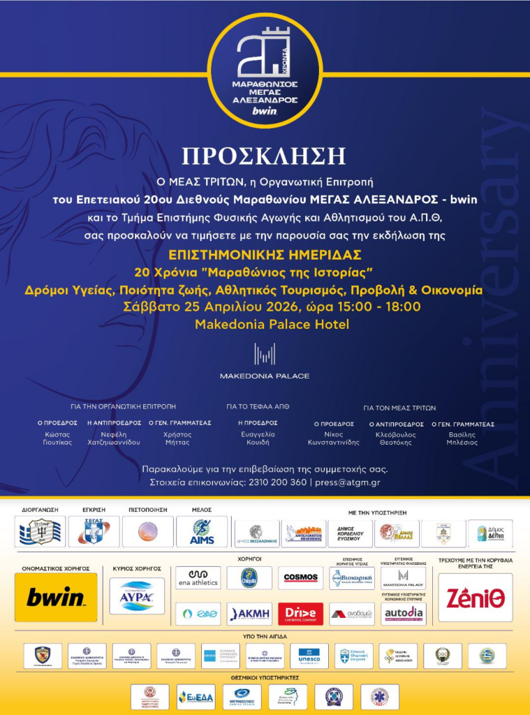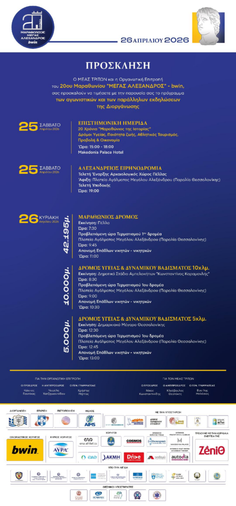 Info· Σάβ 25 Απρ στις 8:06 π.μ. 20ος Επετειακός Mαραθώνιος “ΜΕΓΑΣ ΑΛΕΞΑΝΔΡΟΣ” – bwinΓραφείο Μαραθωνίου, Εθνικό Καυτανζόγλειο Στάδιο