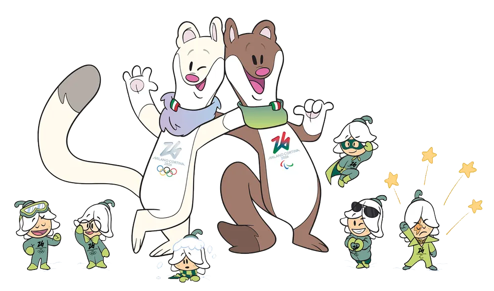 Οι επίσημες μασκότ είναι δύο αδελφάκια, δύο χαριτωμένες ερμίνες — ένα είδος νυφίτσας που ζει