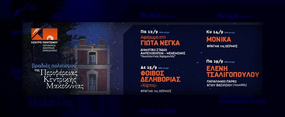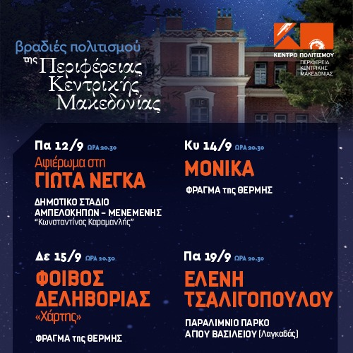 #ΒραδιέςΠολιτισμού2025#ΚέντροΠολιτισμούΚΜ#ΜουσικήΣτοΤοπίο#ΠολιτισμόςΓιαΌλους#ΓιώταΝέγκα#Monika#ΦοίβοςΔεληβοριάς#ΕλένηΤσαλιγοπούλου#ThessalonikiEvents#ΦράγμαΘέρμης#ΛίμνηΚορώνεια