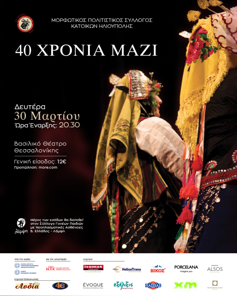 Gregory Grigoras Παρ 20 Μαρ στις 2:46 μ.μ. Προς: Πολιτιστικούς Συντάκτες Από: Γρηγόρη Γρηγορά Φίλες και φίλοι καλησπέρα εύχομαι να είστε όλοι καλά και να περάσετε όμορφα το διάστημα που ακολουθεί και για την πρώτη ημέρα της Άνοιξης – Εαρινή Ισημερία και για την επερχόμενη γιορτή του Ευαγγελισμού και την Εθνική Επέτειο της 25ης Μαρτίου αλλά κοντά είναι και η Μεγάλη Εβδομάδα και το Πάσχα. Σας στέλνω τα παρακάτω για την Επετειακή Παράσταση Παραδοσιακού Χορού και Μουσικής που θα παραχωρήσει ο Μορφωτικός Πολιτιστικός Σύλλογος Κατοίκων Ηλιούπολης συμπληρώνει σαράντα χρόνια συνεχούς και ενεργής παρουσίας στον πολιτιστικό χάρτη του Ευόσμου και της ευρύτερης περιοχής της Θεσσαλονίκης Με την παράκληση να δώσετε περισσότερη προσοχή στην προβολή μιας επετειακής εκδήλωσης και να τιμήσετε με την προβολή, ανάρτηση ή όποιο άλλο τρόπο επιθυμείτε την εκδήλωση. ————————————————————————————————————- Δελτίο τύπου Ηλιούπολη – 40 χρόνια μαζί Μορφωτικός Πολιτιστικός Σύλλογος Κατοίκων Ηλιούπολης γιορτάζει 40 χρόνια Ο Μορφωτικός Πολιτιστικός Σύλλογος Κατοίκων Ηλιούπολης γιορτάζει σαράντα χρόνια συνεχούς πολιτιστικής παρουσίας και προσφοράς στον Εύοσμο με μια επετειακή παράσταση αφιερωμένη στη μνήμη, την παράδοση και τους ανθρώπους του τόπου. Η παράσταση αποτελεί ένα πολιτιστικό ταξίδι στις ρίζες της Ηλιούπολης και στους πληθυσμούς που εγκαταστάθηκαν σε ολόκληρη την περιοχή του Ευόσμου και συνέβαλαν καθοριστικά στη διαμόρφωση της κοινωνικής και πολιτιστικής της ταυτότητας: Πόντιοι, Μικρασιάτες, Θρακιώτες, Σαρακατσάνοι, Βλάχοι, Σερραίοι και Ντόπιοι. Μέσα από παραδοσιακούς χορούς και τραγούδια από τις αντίστοιχες περιοχές, αναδεικνύεται το πολύχρωμο πολιτιστικό μωσαϊκό που χαρακτηρίζει την περιοχή μέχρι σήμερα. Στη σκηνή θα παρουσιαστούν όλα τα ενεργά χορευτικά τμήματα του συλλόγου — παιδικό, εφηβικό-νεανικό και ενηλίκων — καθώς και η χορωδία, αποτυπώνοντας τη διαγενεακή συνέχεια της παράδοσης και τη ζωντανή σχέση του συλλόγου με την τοπική κοινωνία. Την παράσταση πλαισιώνει ζωντανή παραδοσιακή μουσική από καταξιωμένους μουσικούς, οι οποίοι με τα όργανα και τις φωνές τους δίνουν αυθεντικότητα και δύναμη στο καλλιτεχνικό αποτέλεσμα: ο Ηλίας Δημάνος στο νταούλι, ο Γιάννης Μάλαμας και ο Χρήστος Μάλαμας στον ζουρνά, ο Γιώργος Ουζούνης στο κλαρίνο, ο Γιώργος Νταβλιάκος στο σοπράνο, ο Σταύρος Σεραφείμ στην τρομπέτα, ο Άγγελος Μούτσας στα κρουστά, ο Δημήτρης Παληογιάννης στο λαούτο, ο Γιάννης Κουσουλάκης στο βιολί και ο Σταύρος Μπόνιας στο τραγούδι. Η επετειακή αυτή εκδήλωση δεν αποτελεί απλώς έναν εορτασμό ενός αριθμού, αλλά μια ζωντανή μαρτυρία σαράντα χρόνων συλλογικής πορείας, προσφοράς και αγάπης για την παράδοση. Είναι ένας φόρος τιμής στους ανθρώπους που οραματίστηκαν και στήριξαν τον σύλλογο από το 1986 μέχρι σήμερα, καθώς και μια υπόσχεση συνέχισης της πολιτιστικής του διαδρομής στο μέλλον. Ημερομηνία: 30 Μαρτίου 2026 Χώρος: Βασιλικό Θέατρο Θεσσαλονίκης Τιμή εισόδου: 12€ Ώρα έναρξης: 20:30 ———————————————————————————————– Ιστορικό εκδηλώσεων Ετήσιες εκδηλώσεις Ηλιουπολίτικα – 2ημερο πολιτιστικών εκδηλώσεων τον Μάιο Χορωδιακό Αντάμωμα – Συνάντηση χορωδιών Χριστουγεννιάτικο Bazaar Χριστουγεννιάτικη εκδήλωση με παραδοσιακούς χορούς Καφές της αγάπης – φιλανθρωπική εκδήλωση Χορευτικό αντάμωμα – Γλέντι με π