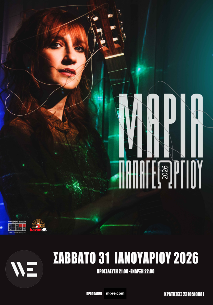 live @WE 31.1.2026Ώρα προσέλευσης 21:00 -Ώρα έναρξης 22:00Προπώληση 15€Περιορισμένες κρατήσεις θέσεων 2310510081