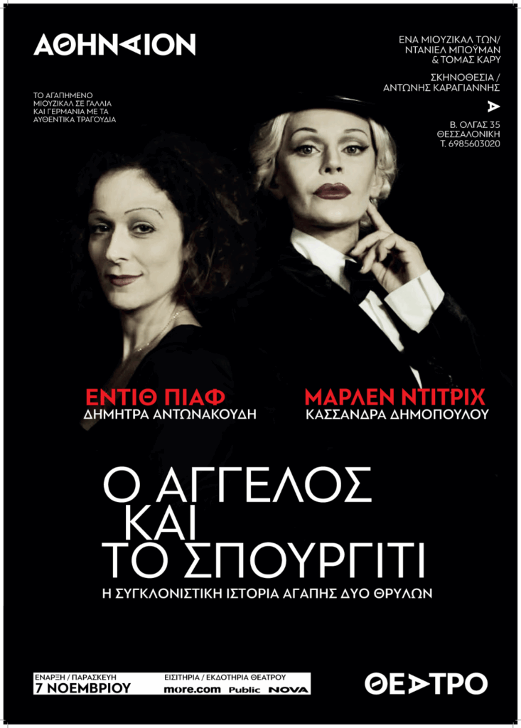 • yannis dalakasΑπό:ydalakas@gmail.comΠρος:yannis dalakasΙδιαίτ. κοιν.:lazaros_glouftsis@yahoo.grΠαρ 31 Οκτ στις 9:11 π.μ.«Ο Άγγελος και το Σπουργίτι»Από 7 Νοεμβρίου 2025Στο Θέατρο ΑθήναιονΟ Άγγελος και το Σπουργίτι.jpgΜία συγκλονιστική ιστορία αγάπης μεταξύ της Μάρλεν Ντίτριχ και της Εντίθ Πιάφ.Το μιούζικαλ των Ντάνιελ Μπόϋμαν και Τόμας Κάρυ «Ο Άγγελος και το Σπουργίτι», η συγκλονιστική ιστορία αγάπης μεταξύ των δύο θρύλων της σκηνής, της Μαρλέν Ντίτριχ και της Εντίθ Πιάφ, ζωντανεύει για πρώτη φορά στην Ελλάδα σε σκηνοθεσία Αντώνη Καραγιάννη, στο ανανεωμένο Θέατρο Αθήναιον από την Παρασκευή 7 Νοεμβρίου 2025 και για περιορισμένο αριθμό παραστάσεων.Μια ιστορία γεμάτη τρυφερότητα, θάρρος και αλήθεια για δύο γυναίκες που έζησαν έντονα, ερωτεύτηκαν χωρίς φόβο, – το έργο φωτίζει την αθέατη, σε πολλούς, σύντομη ερωτική τους σχέση -, και έγιναν παγκόσμια σύμβολα.Η προσεγμένη και αριστοκρατική Μαρλέν Ντίτριχ «Γαλάζιος Άγγελος» με την πρωσική της ανατροφή και η αυθόρμητη Εντίθ Πιάφ «Σπουργίτης του Παρισιού», με την παριζιάνικη υπερηφάνεια της, συναντήθηκαν και ενώθηκαν με μια σπάνια και αυθεντική φιλία, η οποία άντεξε μέχρι το τέλος της ζωής τους. Από την πρώτη τους κιόλας επαφή το 1948, στη Νέα Υόρκη, συνδέθηκαν τόσο συναισθηματικά όσο και δημιουργικά με αποτέλεσμα η σχέση τους να αφήσει έντονο αποτύπωμα στην καλλιτεχνική τους πορεία.Οι δημιουργοί Ντάνιελ Μπόϋμαν και Τόμας Κάρυ ενσωματώνουν στο έργο τα αγαπημένα και πιο συγκινητικά τραγούδια των δύο καλλιτεχνών, υφαίνοντας ένα μοναδικό μιούζικαλ που ταξιδεύει το κοινό σε μια εποχή γεμάτη πάθος, λάμψη και συγκίνηση. Η mezzo soprano Κασσάνδρα Δημοπούλου και η ηθοποιός και τραγουδίστρια Δήμητρα Αντωνακούδη, οι οποίες ενσαρκώνουν τις θρυλικές Μαρλέν Ντίτριχ και Εντίθ Πιάφ αντίστοιχα, μας παρασύρουν στη γοητευτική ατμόσφαιρα των δεκαετιών του 1940 και 1950 ερμηνεύοντας διάσημα τραγούδια, όπως το La vie en rose, Non, je ne regrette rien, Padam Padam, Lili Marlene σε αυθεντική εκτέλεση.Το έργο έκανε την πρώτη του εμφάνιση στο Burgtheater της Βιέννης το 2013, και λόγω της μεγάλης ανταπόκρισης ενσωματώθηκε στο επίσημο πρόγραμμα, με πάνω από έξι θεατρικές σεζόν σε Αυστρία, Ιταλία, Γερμανία κι Ελβετία.