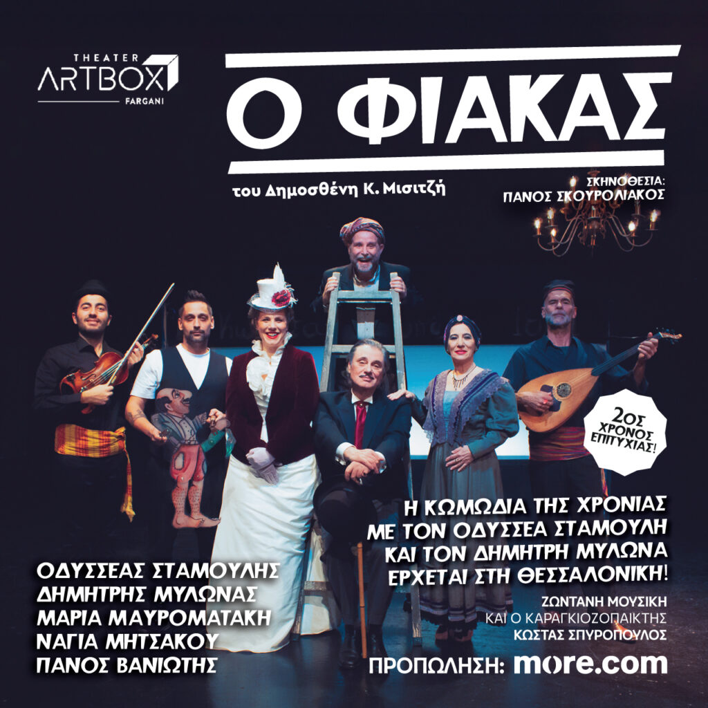 • Μετά τη μεγάλη επιτυχία στην Αθήνα και τα συνεχόμενα soldout, η κωμωδία της χρονιάς«Ο Φιάκας» του Δημοσθένη Κ. Μισιτζή που μέχρι στιγμής την έχουν παρακολουθήσει πάνω από 10.000 θεατές, σε σκηνοθεσία Πάνου Σκουρολιάκου και με τουςΟδυσσέα Σταμούλη στο ρόλο του αξιαγάπητου απατεώνα Φιάκα και Δημήτρη Μυλωνά στο ρόλο του παμπόνηρου υπηρέτη του, Γιάννη, έρχεται από τις 23 Μαρτίουστη Θεσσαλονίκη,