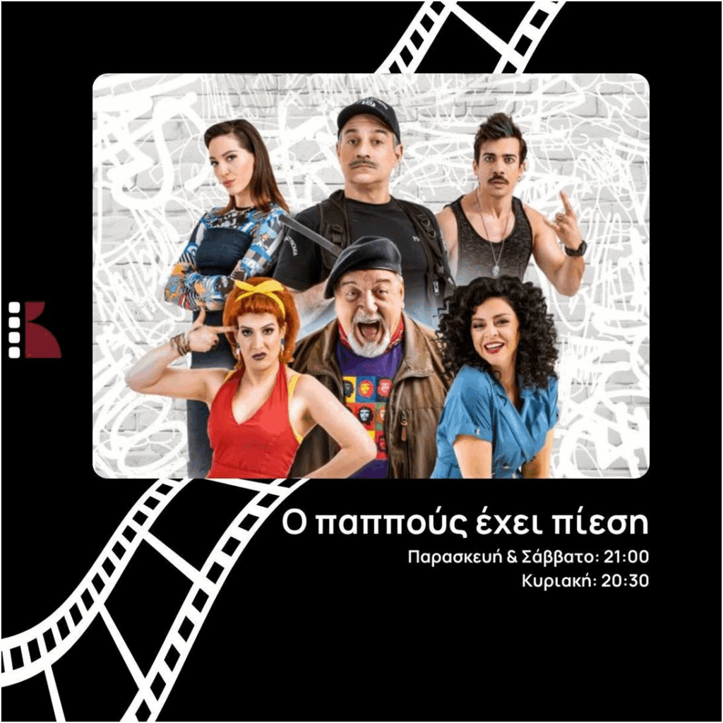 ”Ο ΠΑΠΠΟΥΣ ΕΧΕΙ ΠΙΕΣΗ” που παίζεται στο Κινηματοθέατρον ΚΟΛΟΣΣΑΙΟΝ