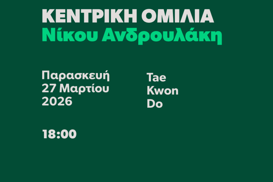 4ο ΤΑΚΤΙΚΟ ΣΥΝΕΔΡΙΟ – Κεντρική Ομιλία Νίκου Ανδρουλάκη Παρασκευή 27 Μαρτίου 2026 18:00 Tae Kwon Doαπό Lazaros Glouftsis30 Μαρτίου, 202630 Μαρτίου, 2026