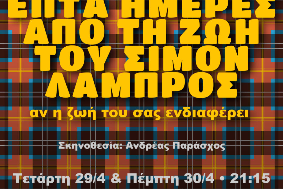 Δελτίο Τύπου | Bloom Theatre Group x Ανοιχτή Θεατρική Σκηνή της Πόλης 26 | «Επτά ημέρες από τη ζωή του Σιμόν Λαμπρός – αν η ζωή του σας ενδιαφέρει»