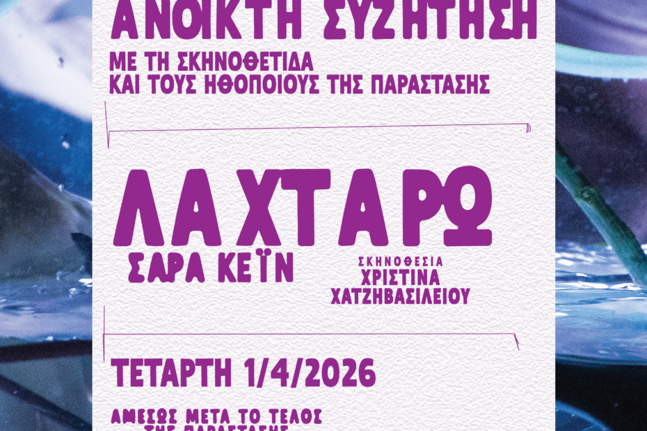 ΚΘΒΕ: «ΛΑΧΤΑΡΩ» ΤΗΣ ΣΑΡΑ ΚΕΪΝ | ΑΝΟΙΚΤΗ ΣΥΖΗΤΗΣΗ ΜΕ ΤΗ ΣΚΗΝΟΘΕΤΙΔΑ ΚΑΙ ΤΟΥΣ ΗΘΟΠΟΙΟΥΣ ΤΗΣ ΠΑΡΑΣΤΑΣΗΣ |ΤΕΤΑΡΤΗ 1 ΑΠΡΙΛΙΟΥ
