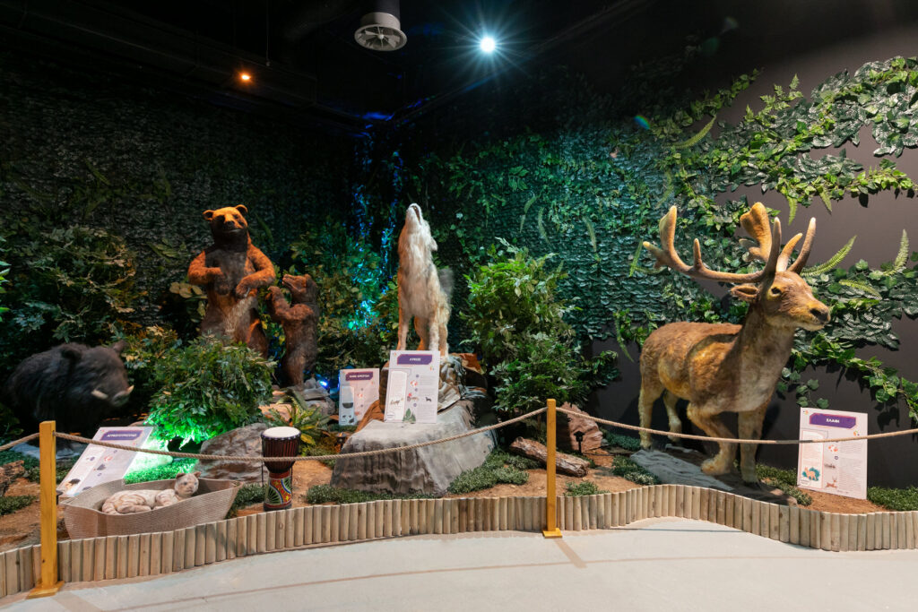 Επιπλέον, μέσα από την περιήγηση και με τη βοήθεια καινοτόμων τεχνολογικών μέσων και διαδραστικές οθόνες θα παρουσιαστούν σπάνιες πληροφορίες για τα άγρια και τα οικόσιτα ζώα, για τα δάση και τις ηπείρους, για τη φιλοζωία.