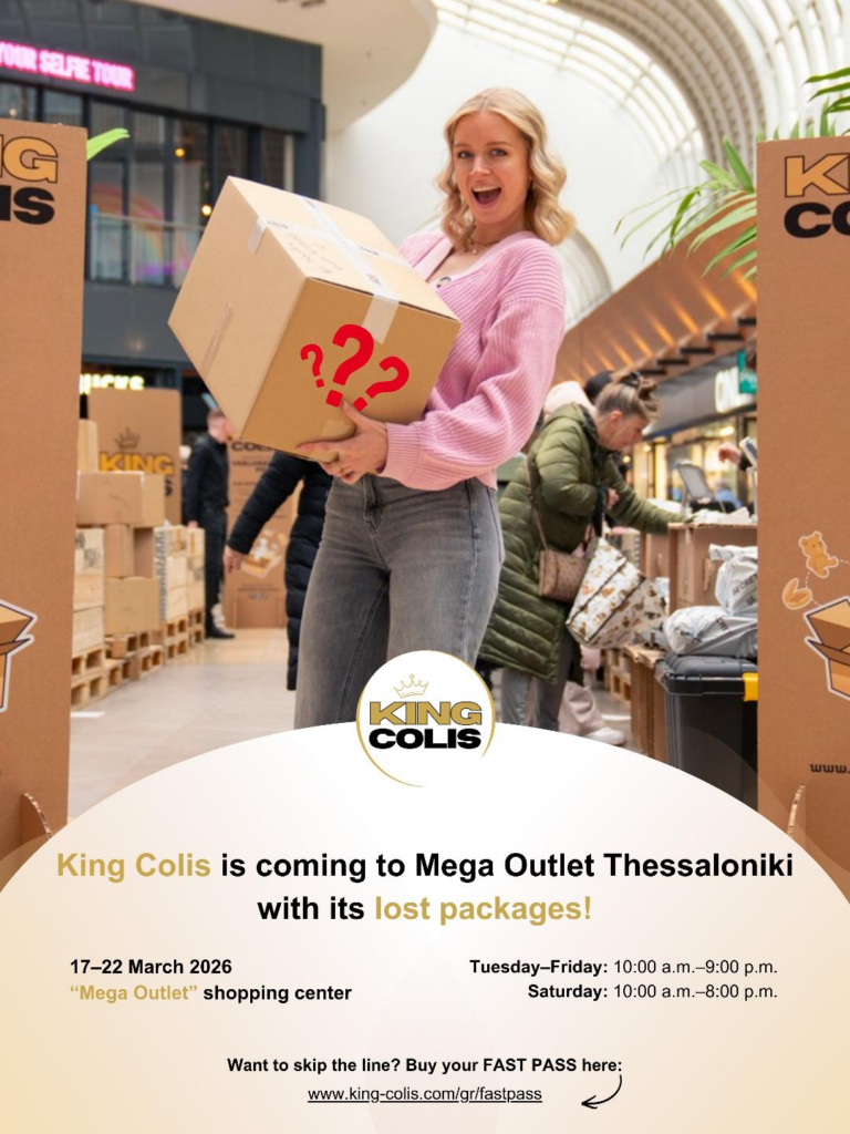 Μαρία ΤσακάλουΠέμ 12 Μαρ στις 12:35 μ.μ. ΠΡΟΣΚΛΗΣΗΑπό 17 έως 21 Μαρτίου, το experiential pop-up store της King Colis φιλοξενείται στο Mega Outlet Store, προσφέροντας μια μοναδική εμπειρία αγορών.Οι επισκέπτες θα έχουν την ευκαιρία να επιλέξουν «χαμένα δέματα» με άγνωστο περιεχόμενο — από τεχνολογικά gadgets και επώνυμα ρούχα μέχρι συλλεκτικά αντικείμενα — τα οποία πωλούνται με βάση το βάρος και ανοίγουν μόνο μετά την αγορά.Ένα πραγματικό κυνήγι θησαυρού, όπου η έκπληξη βρίσκεται πάντα μέσα στο κουτί.📍 Mega Outlet Store – Πυλαία, Θεσσαλονίκη 📅 17–21 Μαρτίου 🕙 10:00 – 21:00*PRESS EVENT – Τρίτη 17 Μαρτίου 2026, 12:00*RSVP Παρακαλούμε επιβεβαιώστε την παρουσία σας, ώστε να σας ετοιμάσουμε το προσωπικό σας gift package. Σας περιμένουμε!ΟΡΓΑΝΩΣΗ ΣΥΝΕΔΡΙΩΝ & ΕΚΔΗΛΩΣΕΩΝ